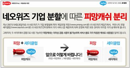 세이클럽 홈과 피망 홈에서 로그인을 하면 구피망캐쉬를 보유하고 있는 고객님께서는
