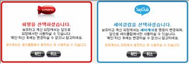 <피망 : 피망캐쉬 선택 시 > <세이클럽 : 세이캐쉬 선택 시>