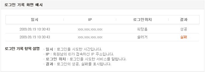 [주의사항]- 로그인 기록 서비스는 일부 내역을