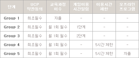 게임 이용을 유도하고자 고안된 5단계 고객 관리 프로그램입니다.